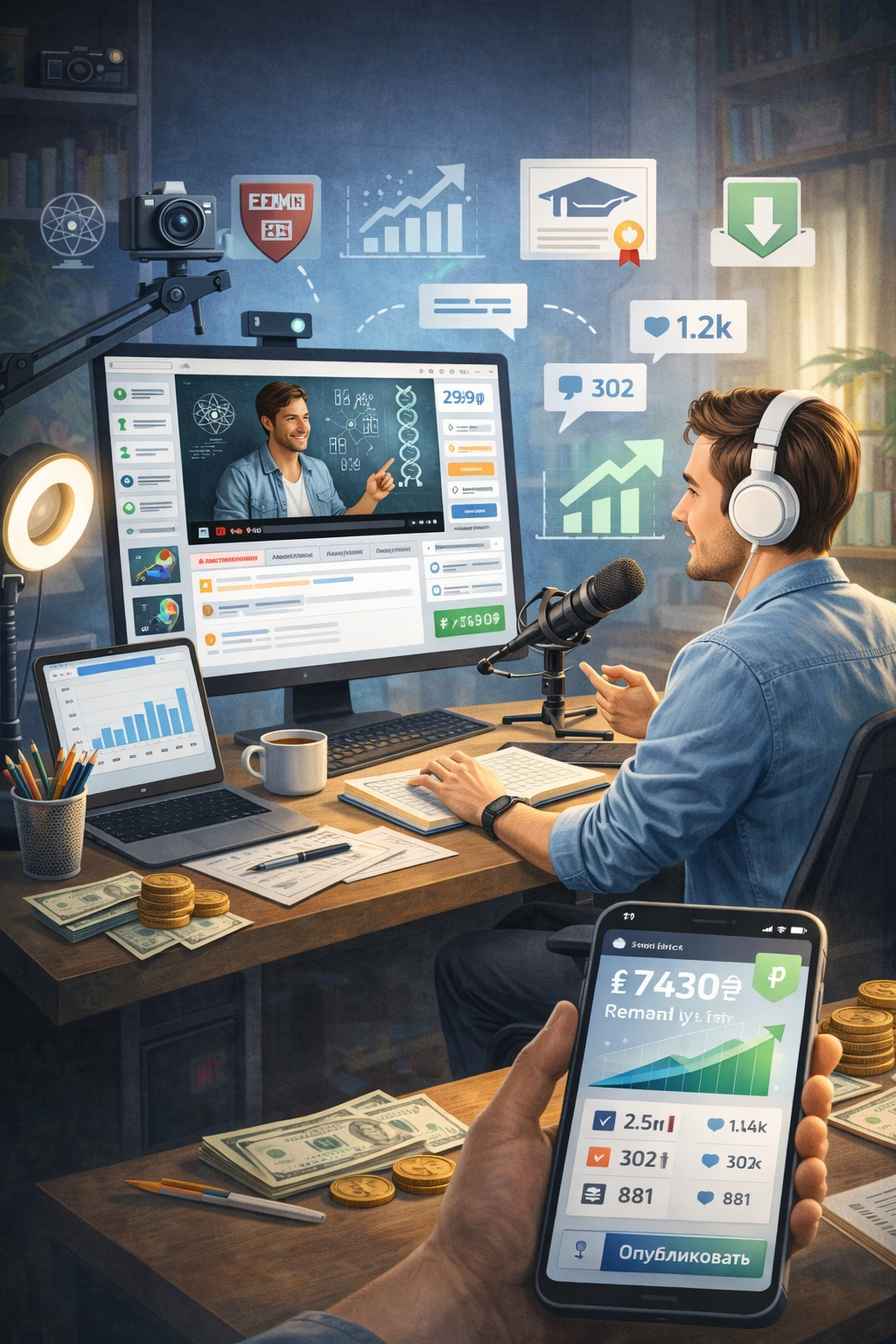 Следи за популярностью своих курсов, собирай данные о просмотрах и вовлечённости, а также зарабатывай на образовательном контенте прямо на платформе.